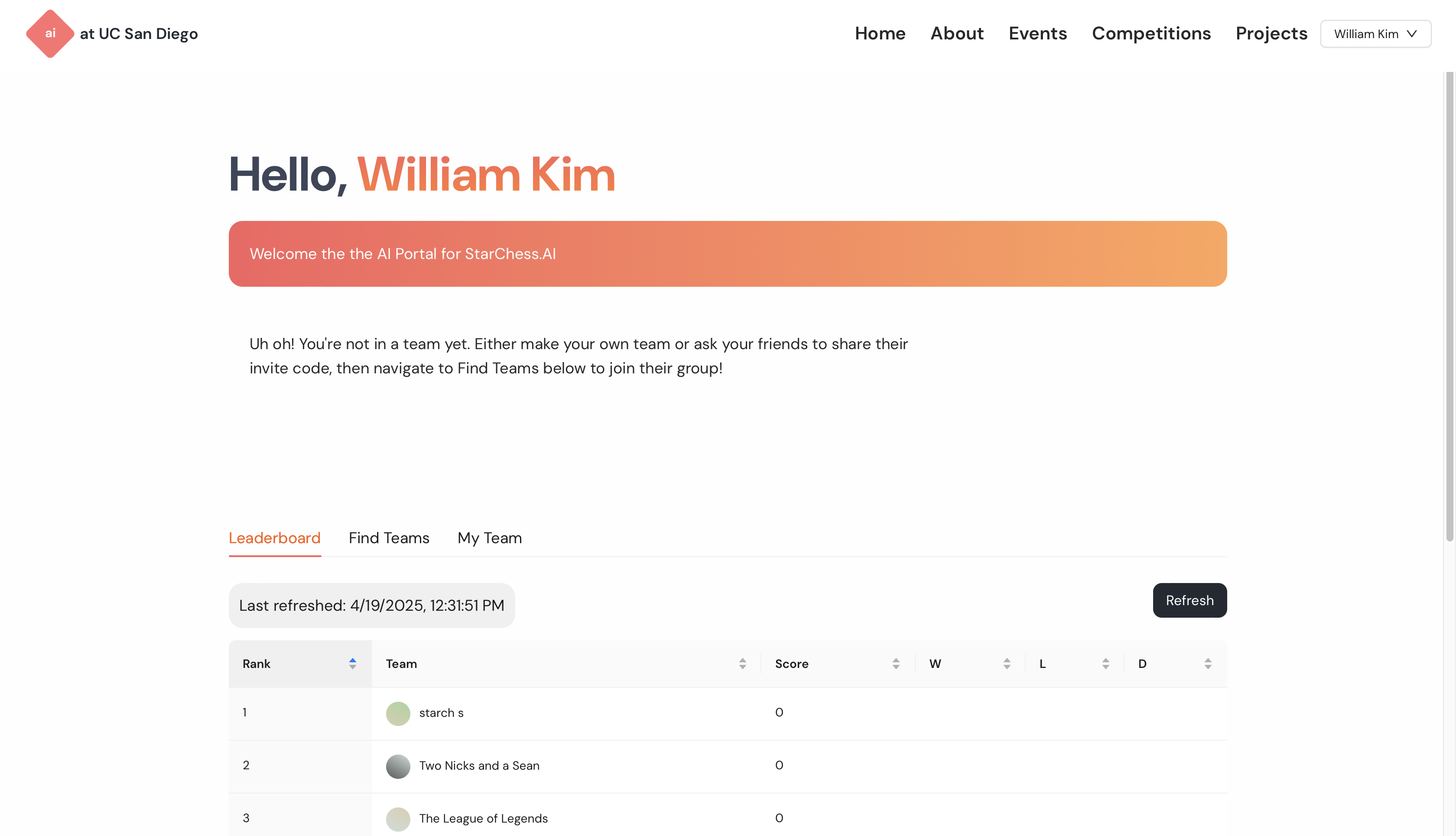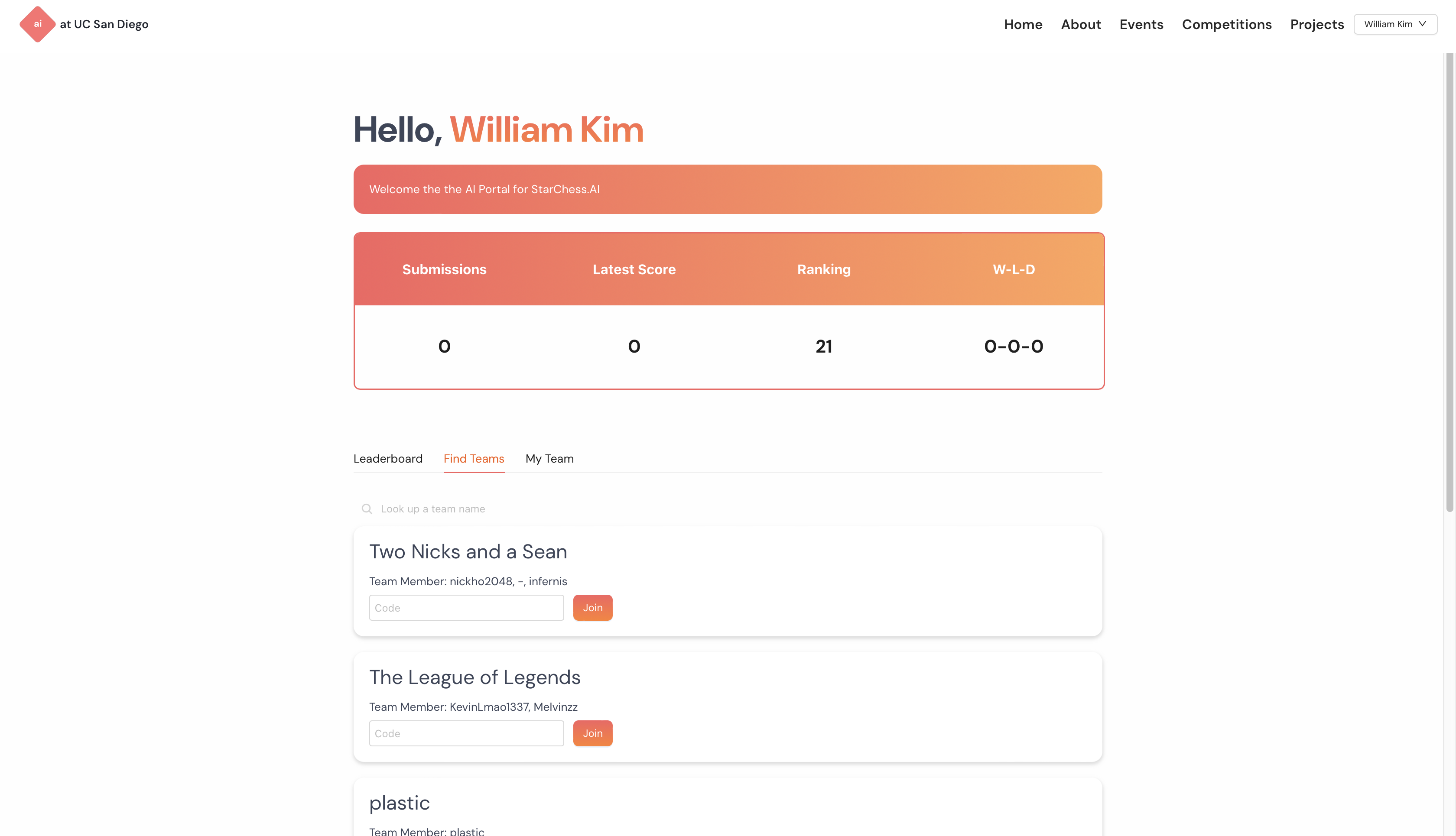 By winter of 2024, my dev lead wanted me to create a new competitions portal for club members. The design process drew inspiration from endless hours or pinterest boards and fiddling around to see what worked and what didn't. I ultimately wanted the layout to feel intuitive but fun to play around with. While this project was put on hold until after I graduated, you can see elements of the original design used for the 2025 StarChess competition.
